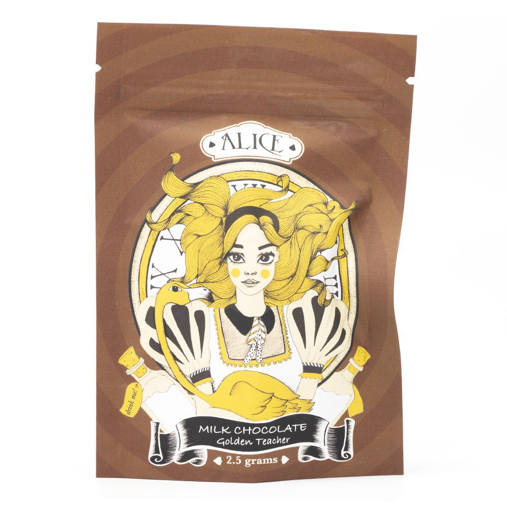 Milk Chocolate 2.5g Mushroom Bunnies by Alice are delicious and properly dosed shroom edibles which are made from the Golden Teachers strain. Every package contains 5 bunnies which each contain .5g of mushrooms. Golden Teachers are a potent breed of shrooms that feature a gold-colored cap with a thin stem. Unlike other shroom varieties, these mushrooms are able to provide a more guided, educative experience, rather than a pure “trip.” magic mushroom to buy.
